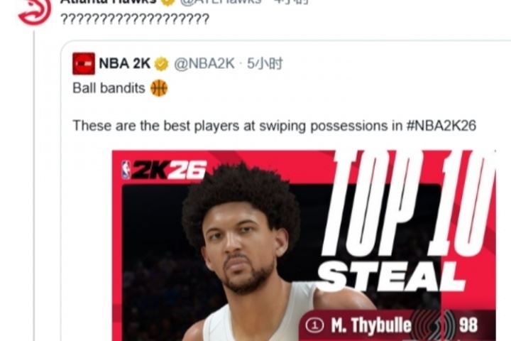 老鹰官推随后还表示:“场均3次抢断应该使你是第一并且能力值是99。”