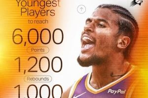 历史最年轻的6000分+1200篮板+1000助攻的球员前八:詹姆斯、爱德华兹、科比、麦迪、东契奇、杰伦-格林、字母哥、布克。