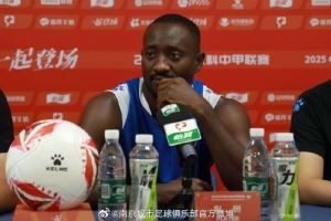 中甲第20轮南京城市主场迎战陕西联合月亮泊。今天晚上,南京城市主教练张晓峰携队员奥格布出席赛前新闻发布会。